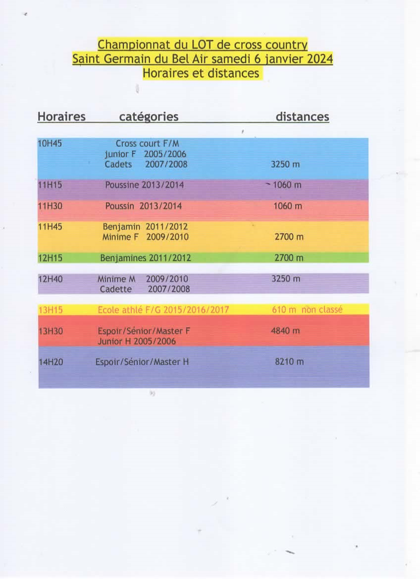 Horaires Cross Départemental du LOT